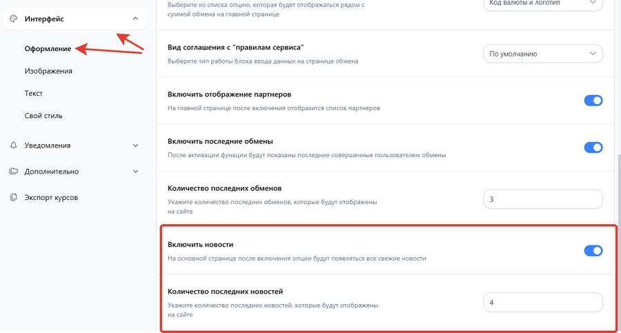 Найдите и включите пункт "Включить новости" Сохраните настройки.