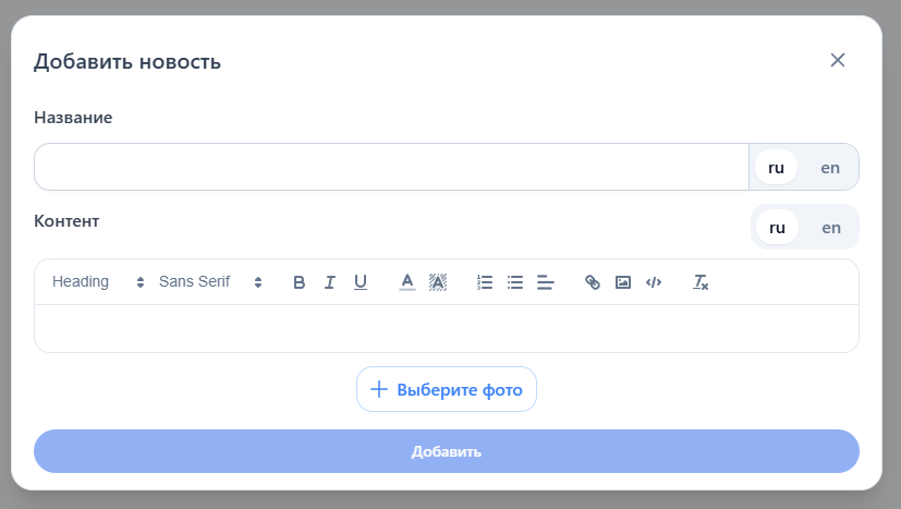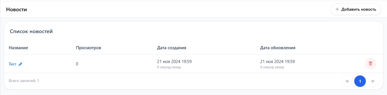 Чтобы добавить новость, нажмите кнопку "Добавить новость"