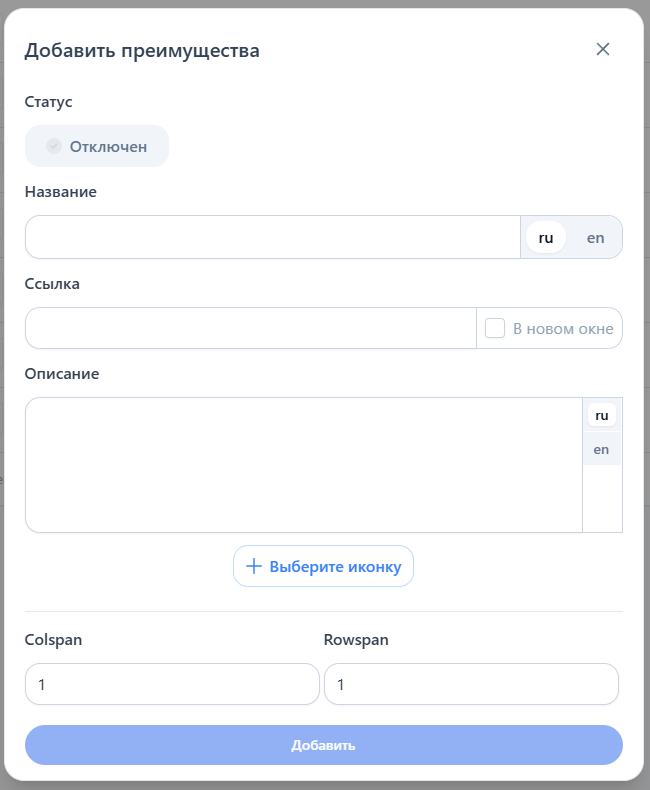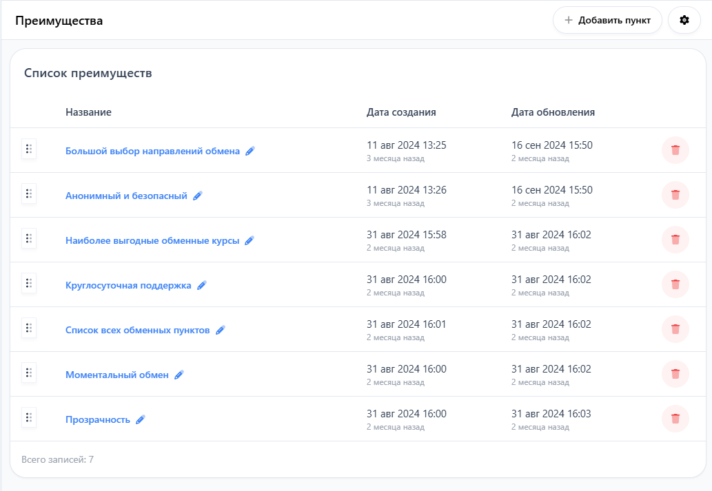 Для добавления нового пункта нажмите кнопку "Добавить пункт"