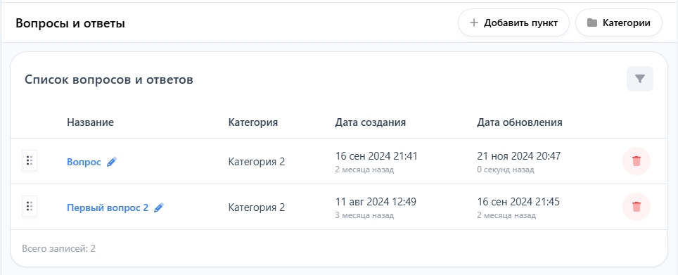 В панели управления откройте раздел "Контент — Вопросы и ответы"