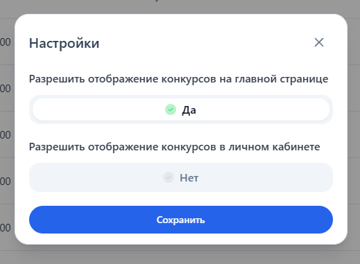 Разрешить отображение конкурсов в личном кабинете