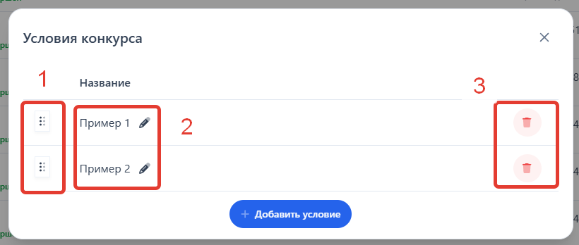 Редактирование условий