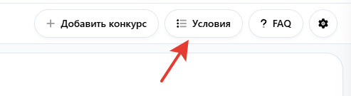 Для создания условий конкурса, в разделе "Утилиты — Конкурсы" нажмите на кнопку "Условия"