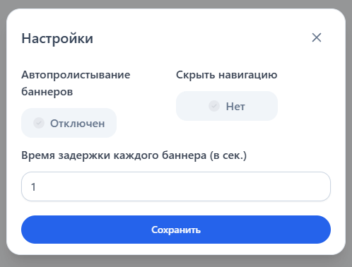 Автопролистывание баннеров — при включении данной функции, созданные баннеры будут автоматически меняться в зависимости от установленного времени в поле "Время задержки каждого баннера (в сек.)"