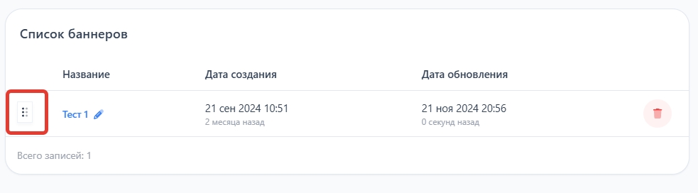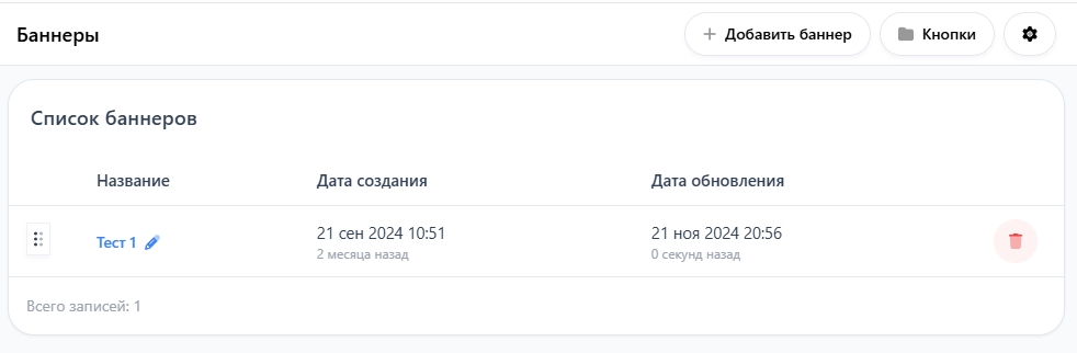 Для добавления нового баннера, нажмите на кнопку "Добавить баннер", которая находится справа в углу.