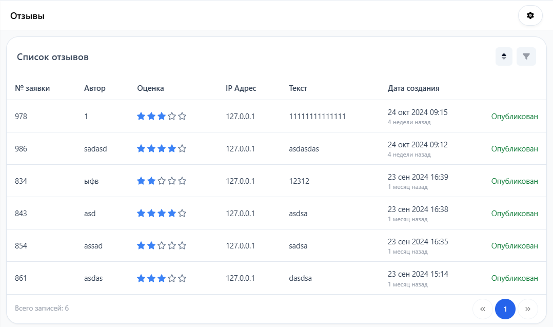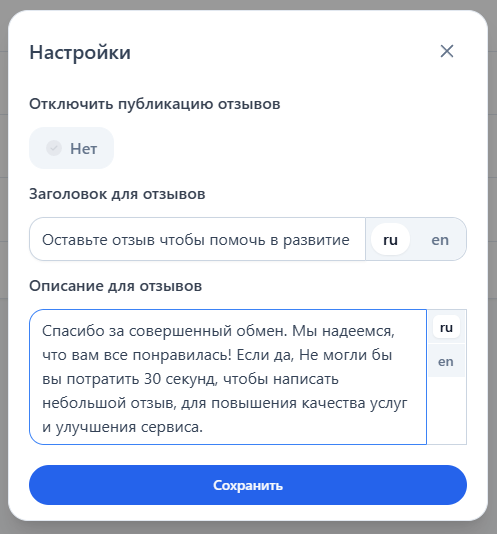 Для модерации и настройки отзывов зайдите в раздел **"Утилиты — Отзывы"**