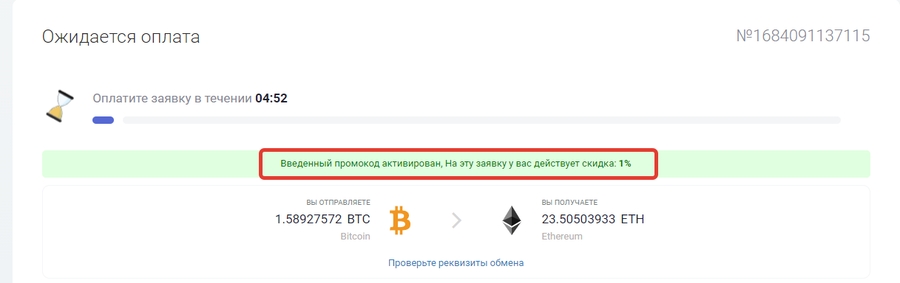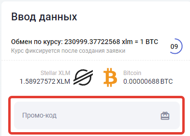 Далее, если промокод активен, то на главной странице ввода данных, появится поле где клиенту будет предложена указать промокод