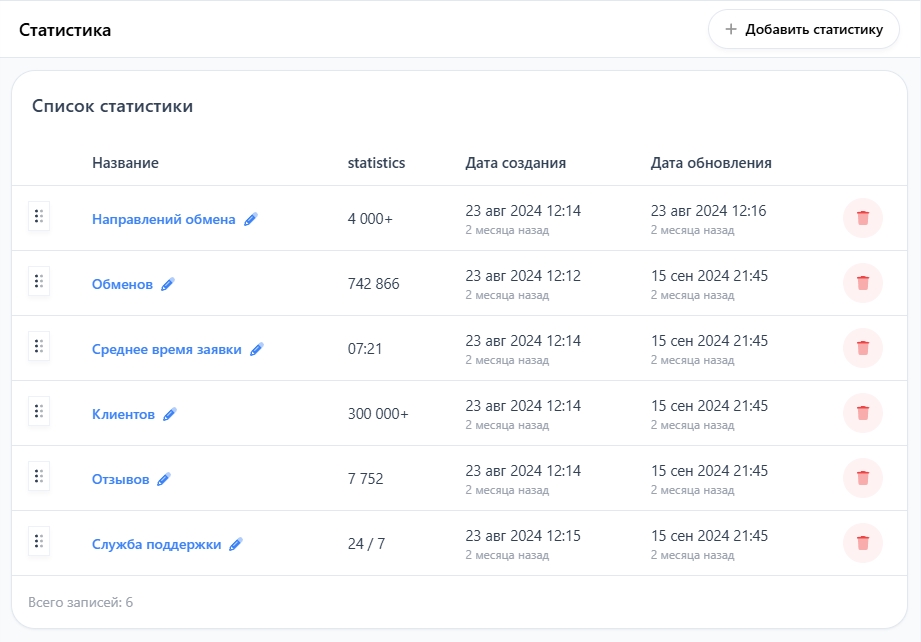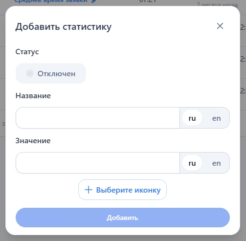 Чтобы добавить новую статистику, справа нажмите на кнопку "Добавить статистику" и заполните представленную форму
