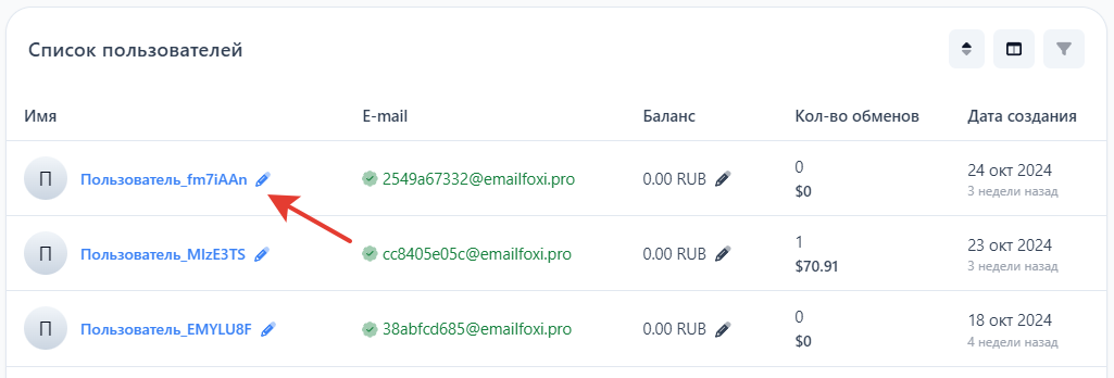Выберите нужного пользователя из списка и перейдите к его редактированию, нажав на его имя.