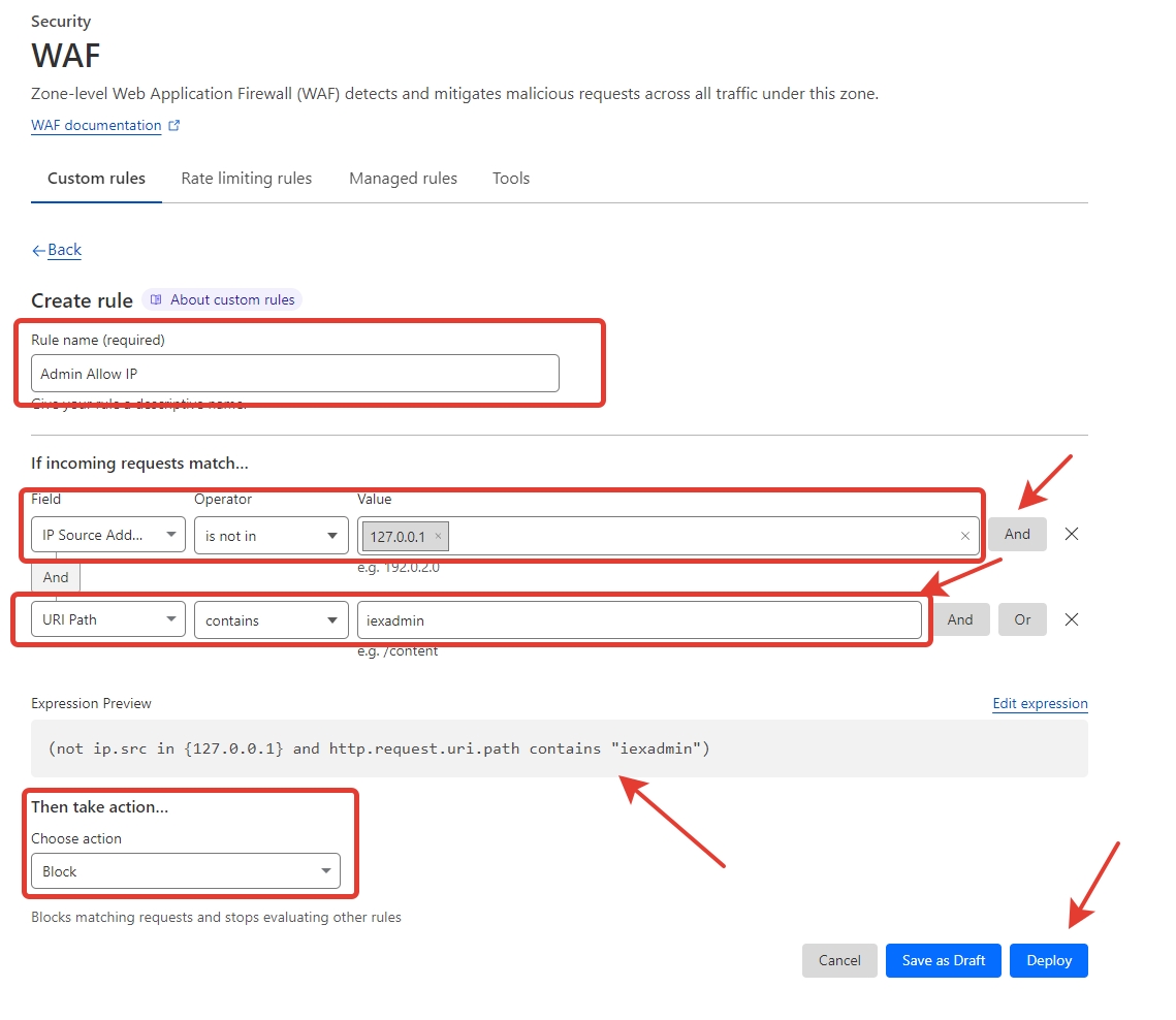 Value: Добавьте ip адреса, у которых должен быть доступ к панели управления