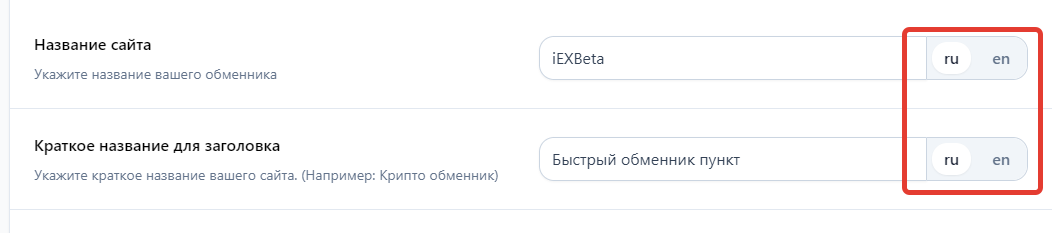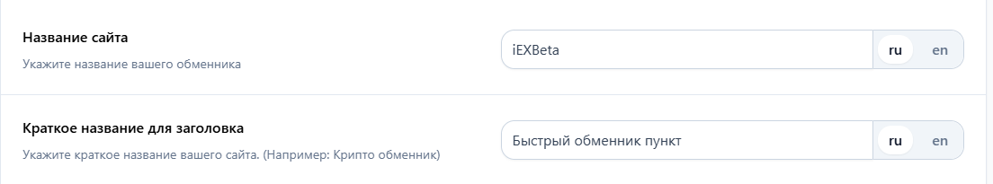 Название сайта: укажите название вашего обменного пункта (например,