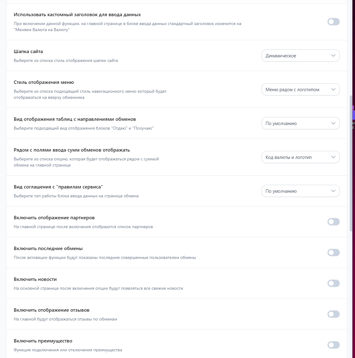И так в панели управления откройте раздел "Настройки - Настройки оформления" и выберите пару важный моментов, после которого уже начнем создание валют и направлений.
