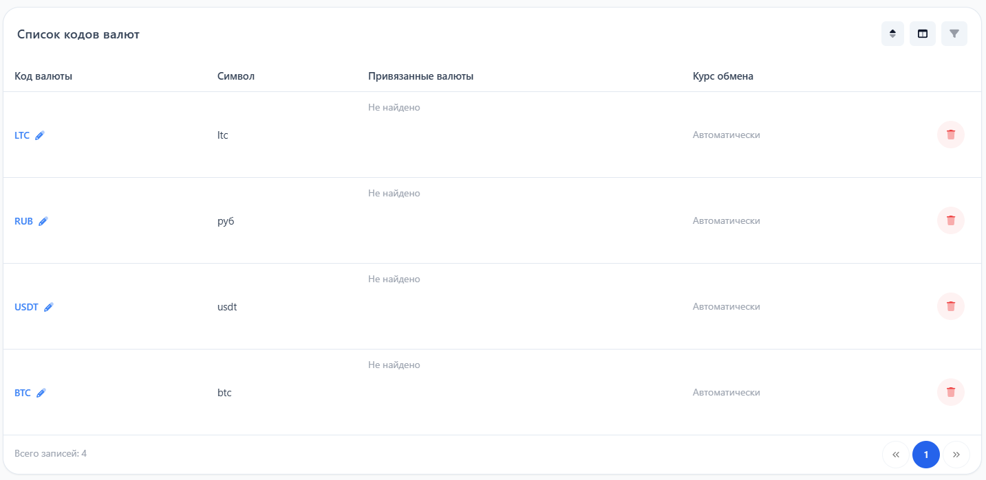 Молодец! Теперь на вашем обменнике есть коды и платежные системы, сейчас нужно соединить их чтобы получилась валюта.