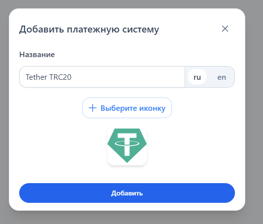 Название — укажите название платежной системы (Например: Tether TRC20)