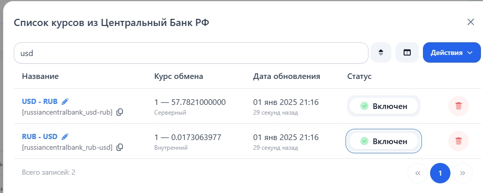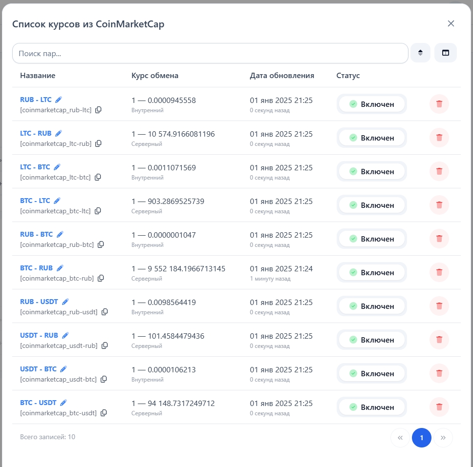 Готово, все необходимые пары мы создали и если у вас правильно настроен Cron, то через минуту курсы будут обновляться автоматически