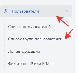 В левом меню откройте раздел: «Пользователи — Список групп пользователей».