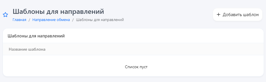 В панели управления откройте раздел "Основное — Направление обмена — Шаблоны для направлений"