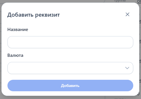 Чтобы добавить новый реквизит, нажмите на кнопку "Добавить реквизит"