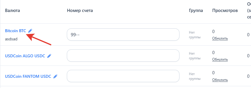Номер счета — Укажите номер счета для валюты