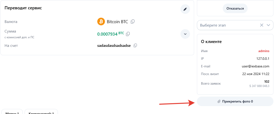 Как прикрепить файл к заявке, чтобы клиент увидел?