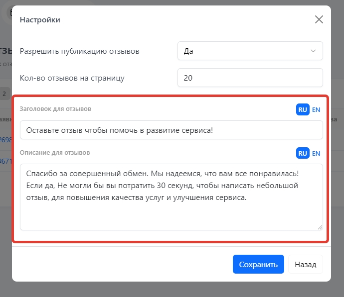 В разделе "Отзывы" появилась возможность добавить свою информацию