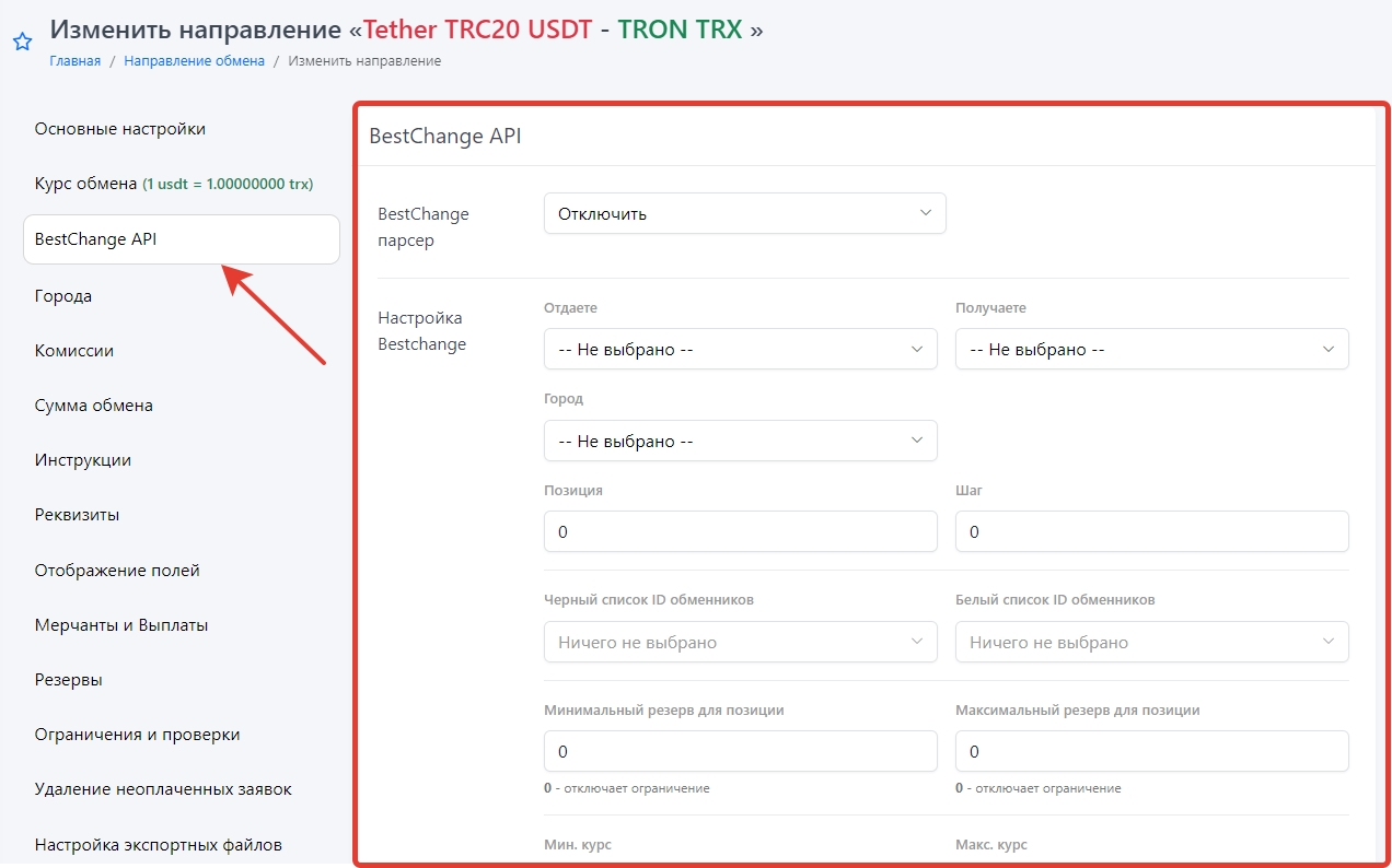 Переработана полностью система работы с BestChange парсером в направлениях обмена и общая