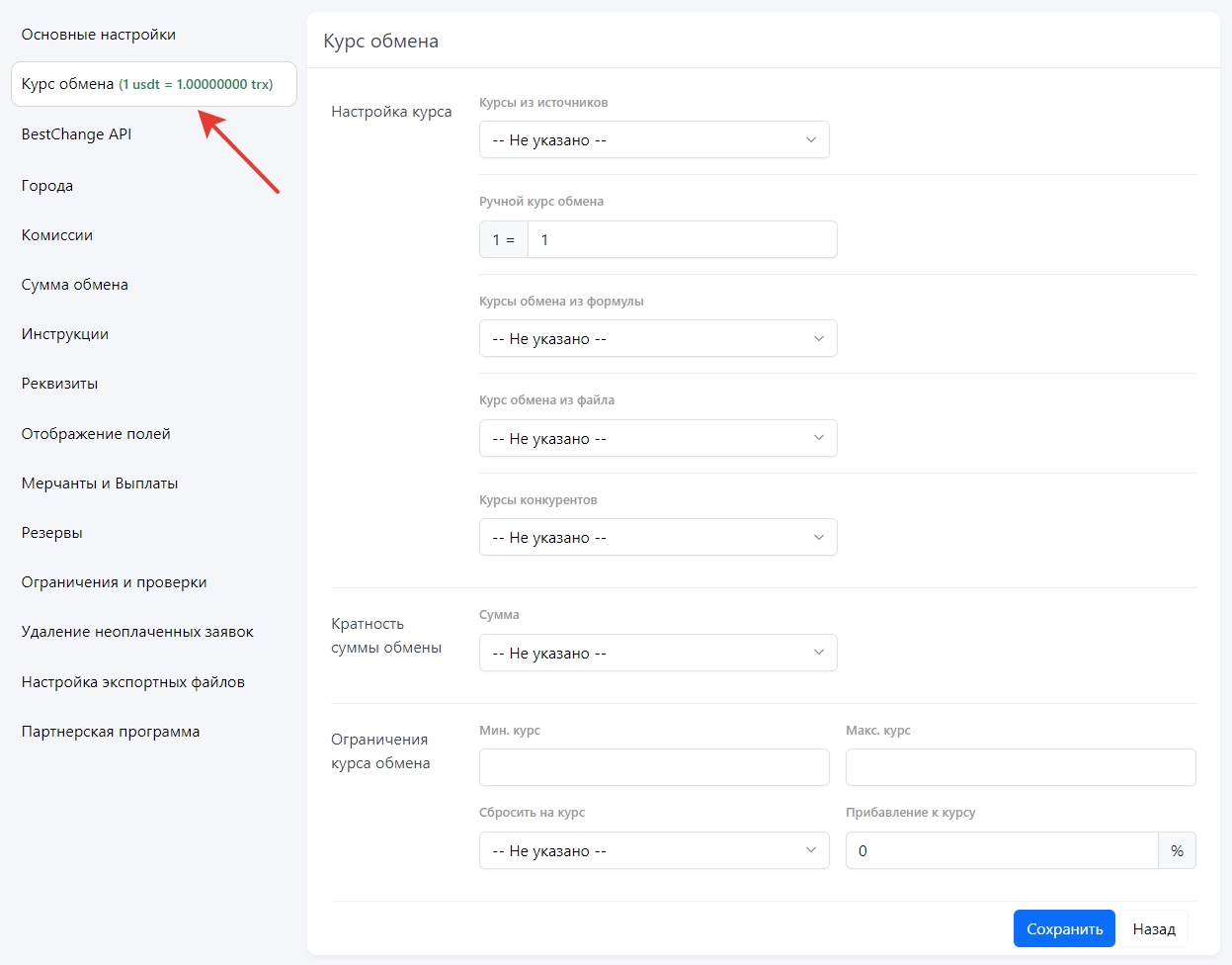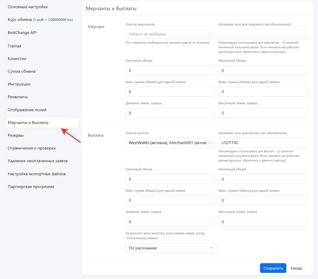 В направлениях обмена теперь можно индивидуально настроить мерчанты и автовыплаты (с опциями)