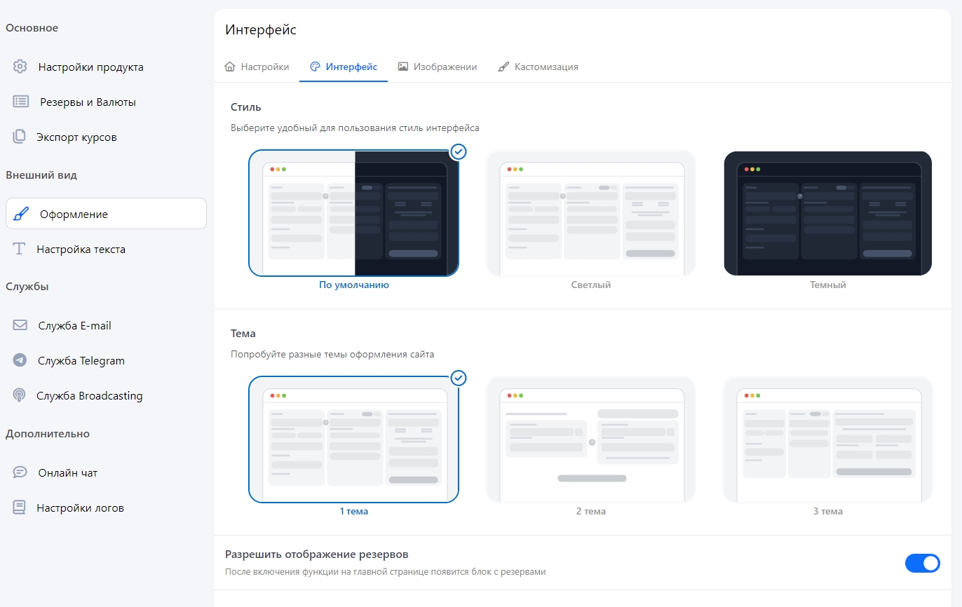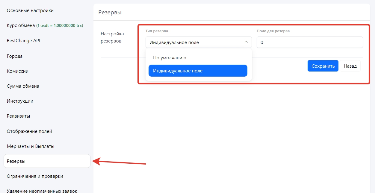 В направлениях обмена добавлена вкладка “Резервы” и теперь для каждого