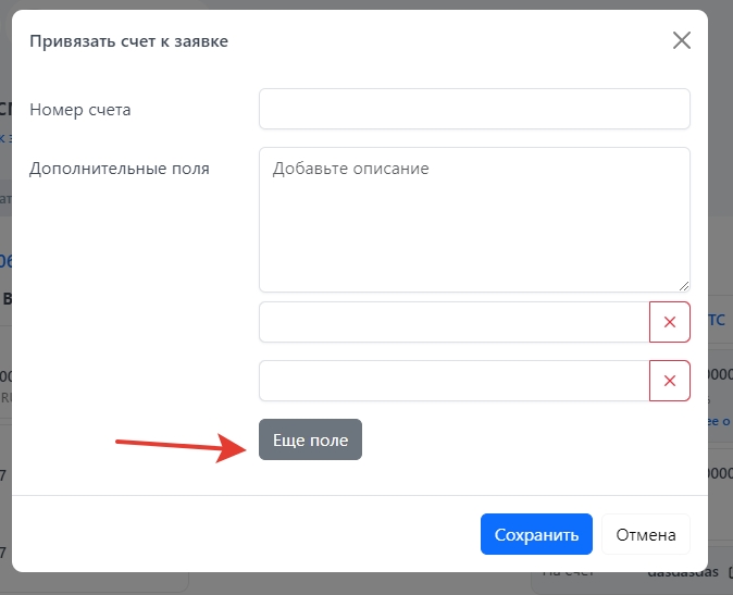 При прикреплении реквизитов к заявке, теперь можно добавлять неограниченное кол-во новых полей