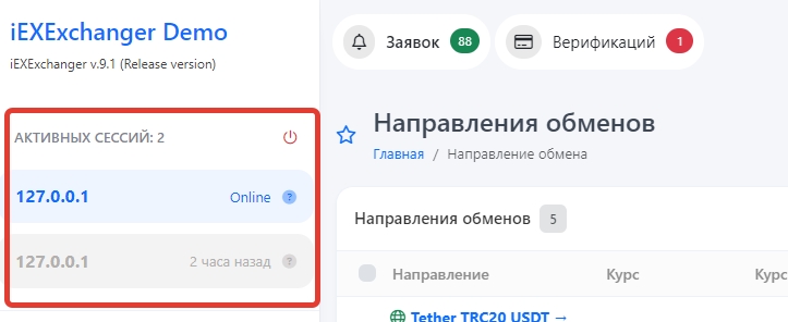 В панели управления появились список всех активных сессий пользователя с возможностью закрытия неиспользуемых