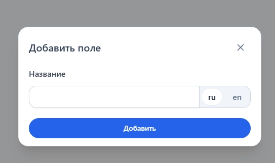 Название — укажите название нового поля. Можно вводить название сразу на нескольких языках, переключаясь между вкладками (например, RU или EN).
