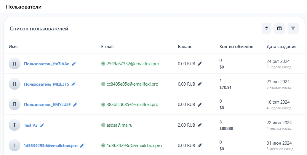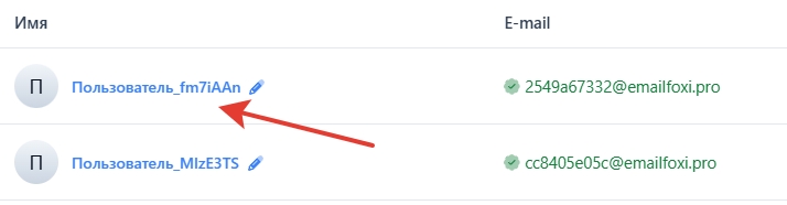 Чтобы изменить данные, кликните на имя пользователя в списке.