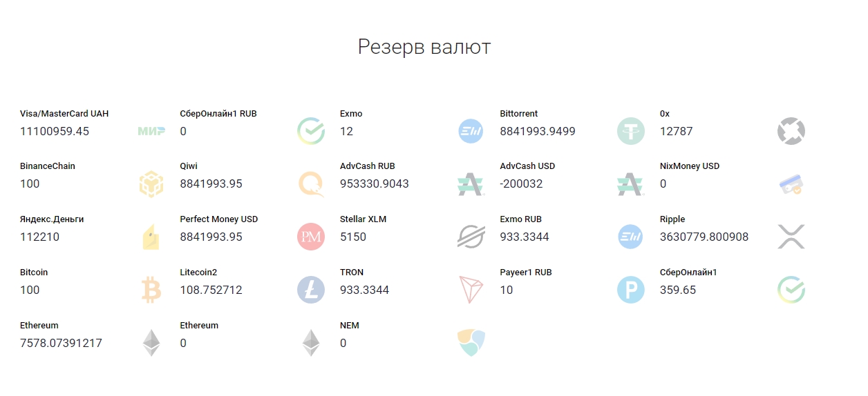 Скрыть резервы валют на главной — позволяет вручную выбрать валюты, резервы которых не должны отображаться на главной странице. Это удобно, если вы хотите скрыть определённые направления обмена от общего списка.