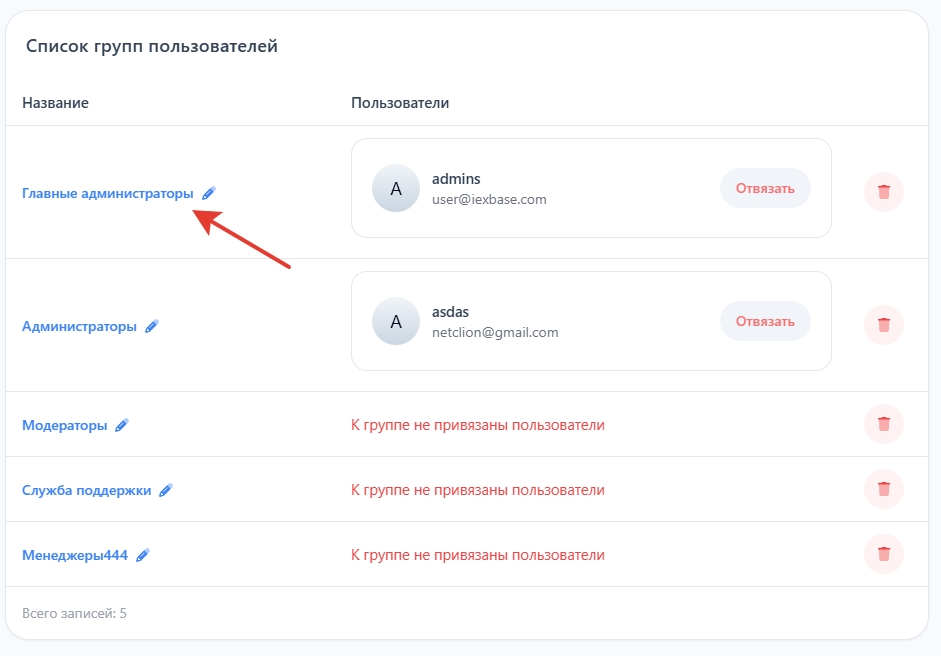В панели управления откройте "Пользователи — Список групп пользователей", выберите группу и перейдите к редактированию.