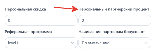 Как индивидуально изменить тип начисления бонусов и персональный процент для конкретного партнёра?