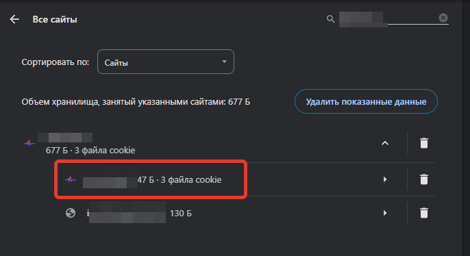 В строке поиска введите адрес вашего сайта и откройте его настройки.